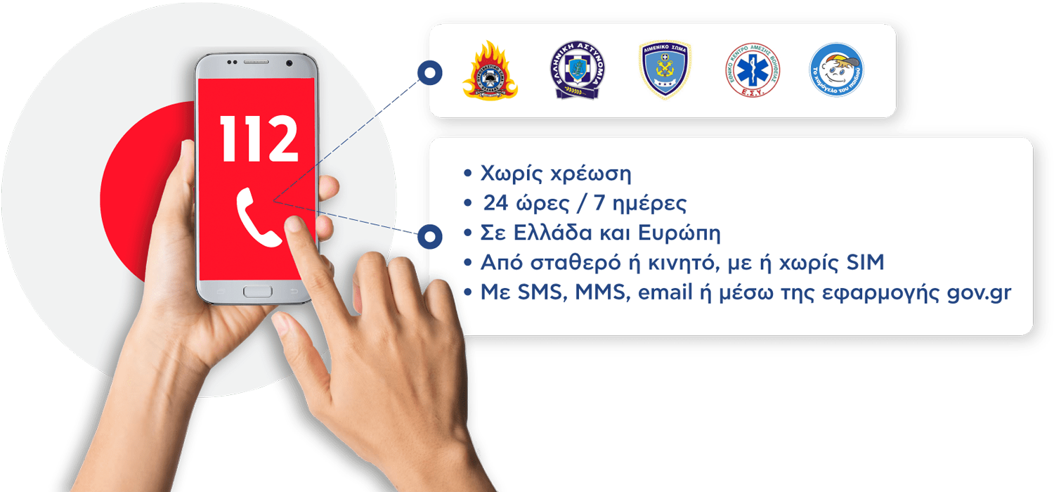 Όταν ένας πολίτης βρίσκεται σε ανάγκη ή κίνδυνο και χρειάζεται άμεση βοήθεια στην Ελλάδα ή την Ε.Ε., μπορεί να επικοινωνήσει με το 112 χωρίς χρέωση. Με την αξιοποίηση νέων τεχνολογιών, η παροχή βοήθειας είναι ευκολότερη, καθώς ενημερώνονται ταυτόχρονα όλοι οι φορείς που χρειάζεται να εμπλακούν και δύναται να εντοπιστεί η θέση του πολίτη.