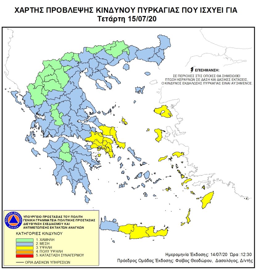 Ημερήσιος Χάρτης Πρόβλεψης Κινδύνου Πυρκαγιάς 15/07/2020