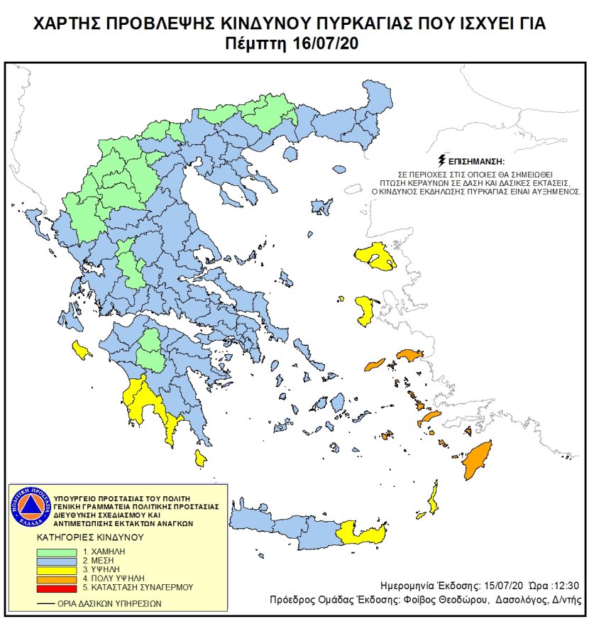 Ημερήσιος Χάρτης Πρόβλεψης Κινδύνου Πυρκαγιάς 16/07/2020