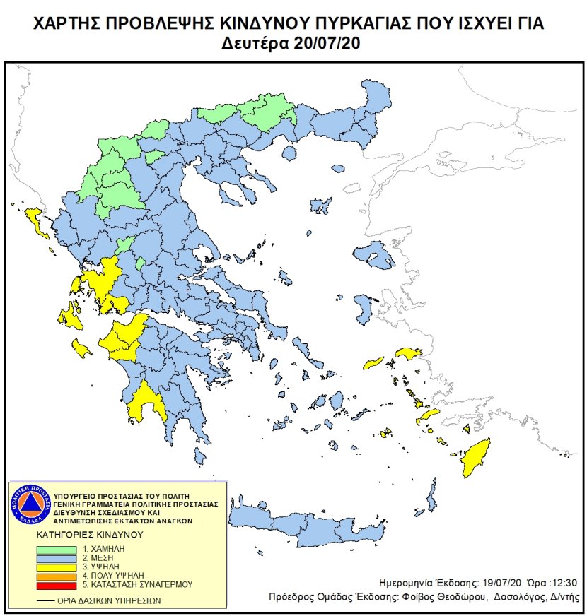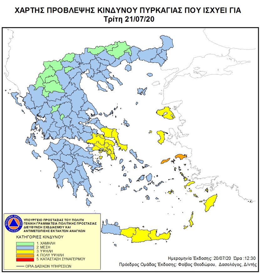 Ημερήσιος Χάρτης Πρόβλεψης Κινδύνου Πυρκαγιάς 20/07/2020
