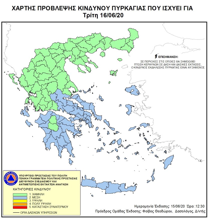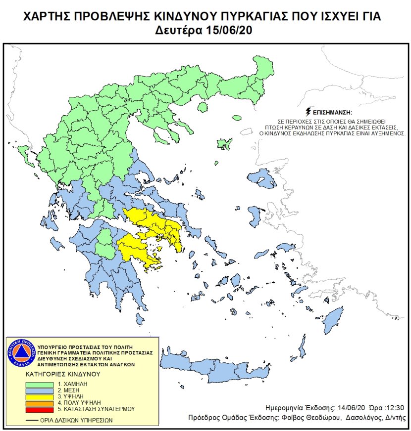 Ημερήσιος Χάρτης Πρόβλεψης Κινδύνου Πυρκαγιάς 15/06/2020