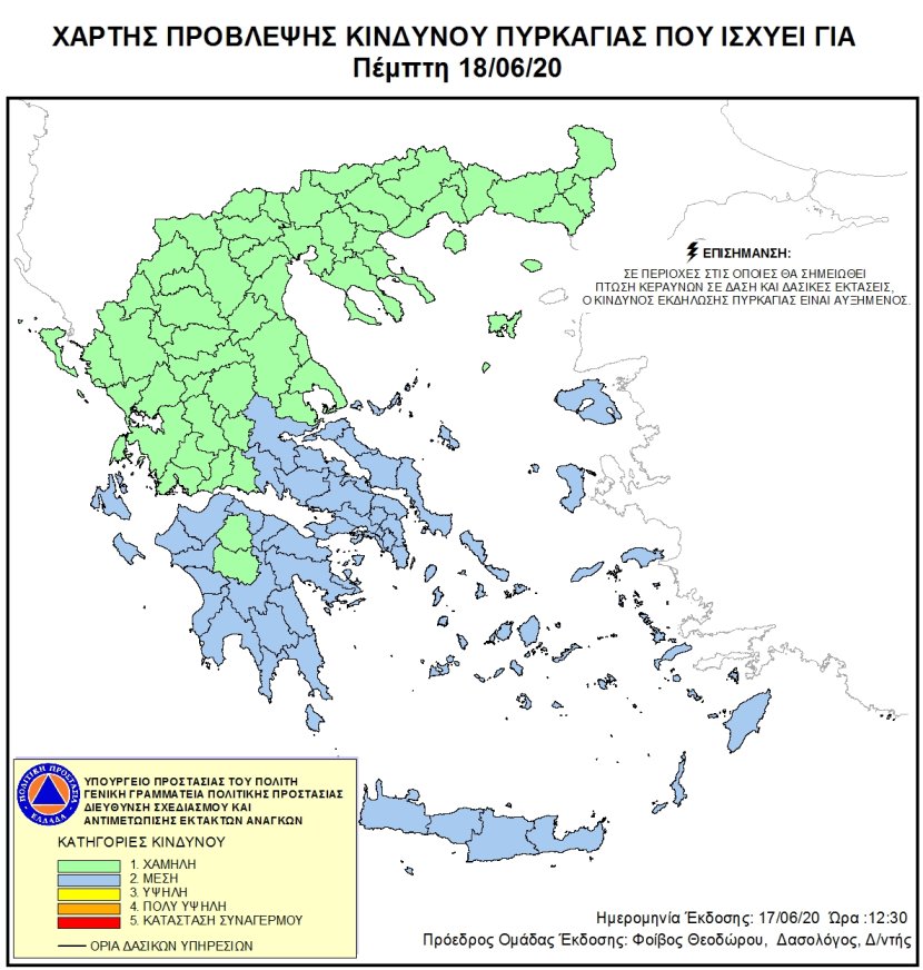 Ημερήσιος Χάρτης Πρόβλεψης Κινδύνου Πυρκαγιάς 18/06/2020