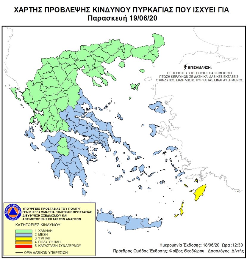 Ημερήσιος Χάρτης Πρόβλεψης Κινδύνου Πυρκαγιάς 19/06/2020