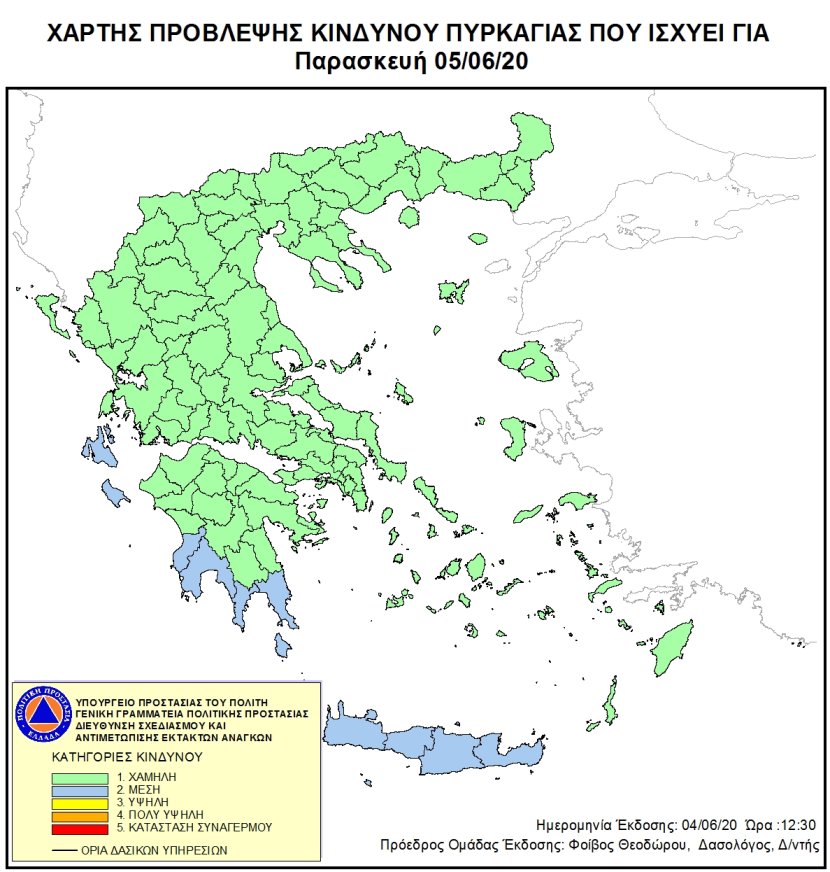 Ημερήσιος Χάρτης Πρόβλεψης Κινδύνου Πυρκαγιάς 05/06/2020