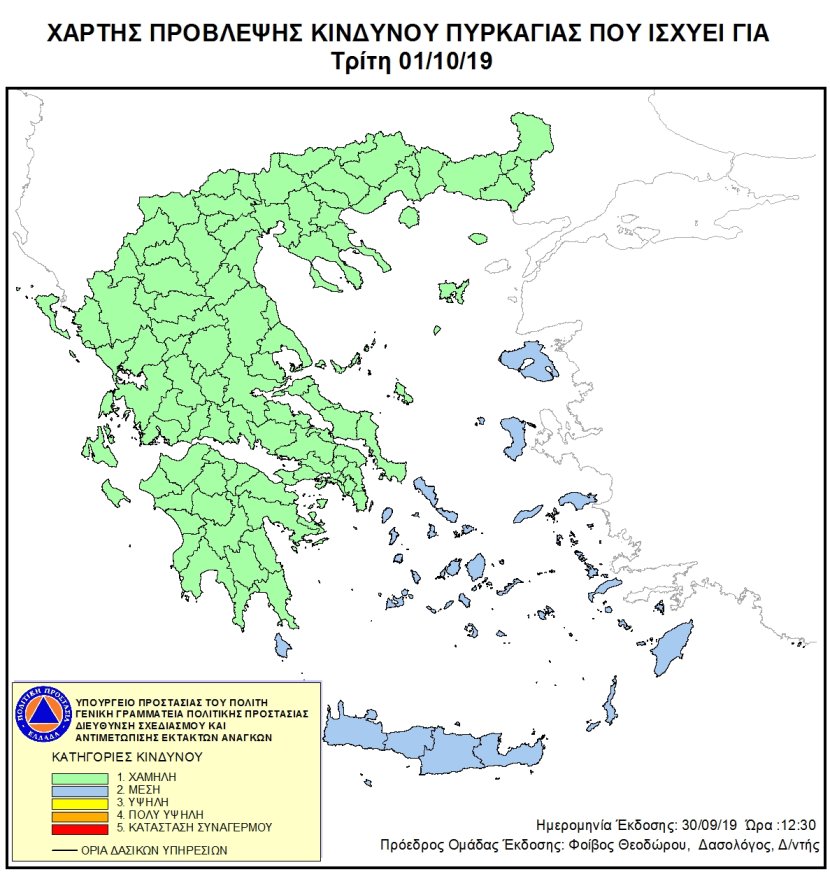 Ημερήσιος Χάρτης Πρόβλεψης Κινδύνου Πυρκαγιάς 01/10/2019