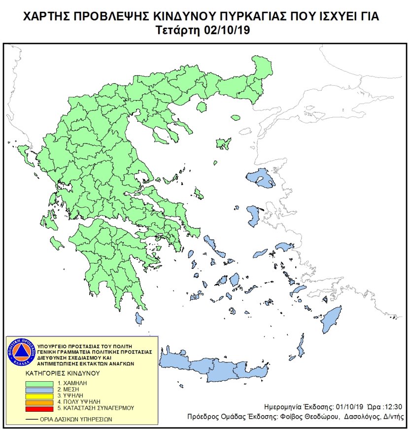 Ημερήσιος Χάρτης Πρόβλεψης Κινδύνου Πυρκαγιάς 02/10/2019