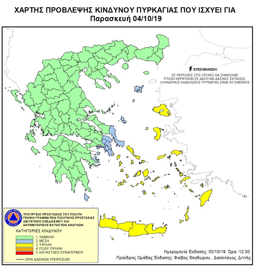 Ημερήσιος Χάρτης Πρόβλεψης Κινδύνου Πυρκαγιάς 04/10/2019