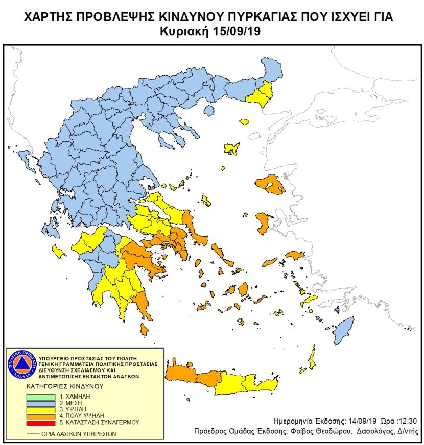 Ημερήσιος Χάρτης Πρόβλεψης Κινδύνου Πυρκαγιάς 15/09/2019