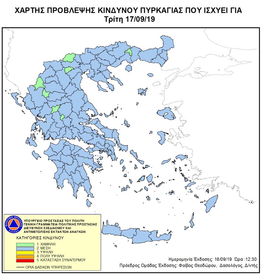 Ημερήσιος Χάρτης Πρόβλεψης Κινδύνου Πυρκαγιάς 17/09/2019