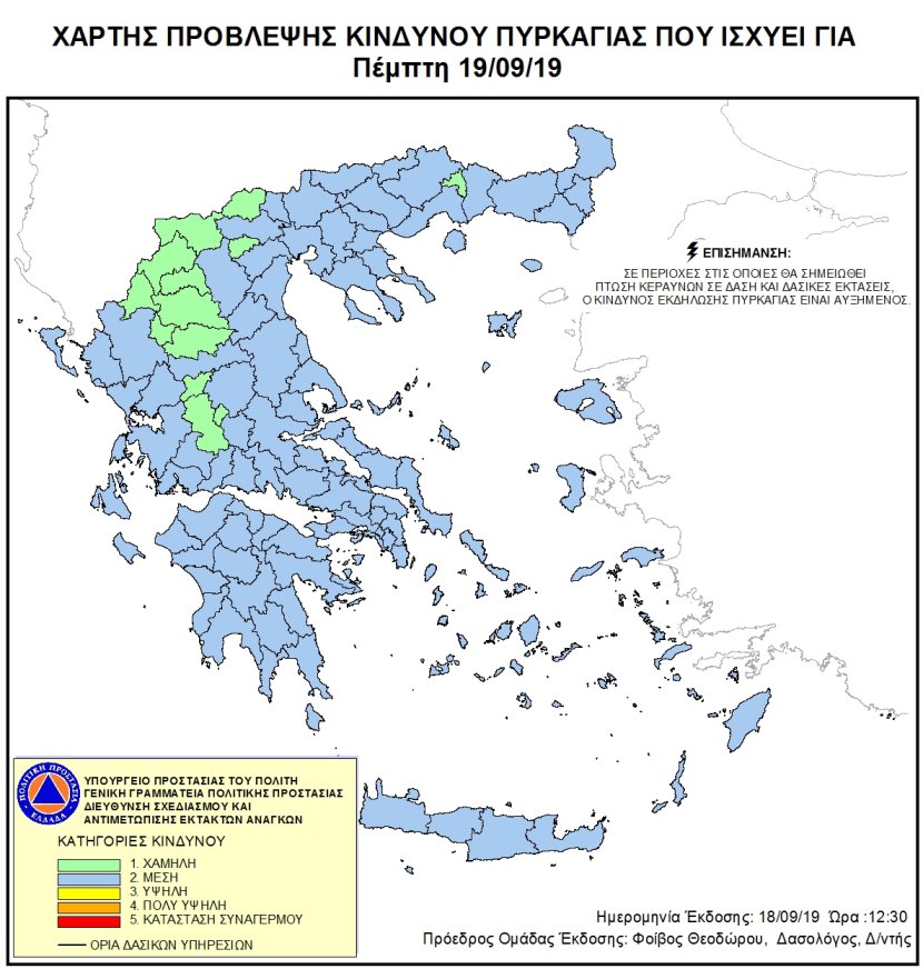 Ημερήσιος Χάρτης Πρόβλεψης Κινδύνου Πυρκαγιάς 19/09/2019