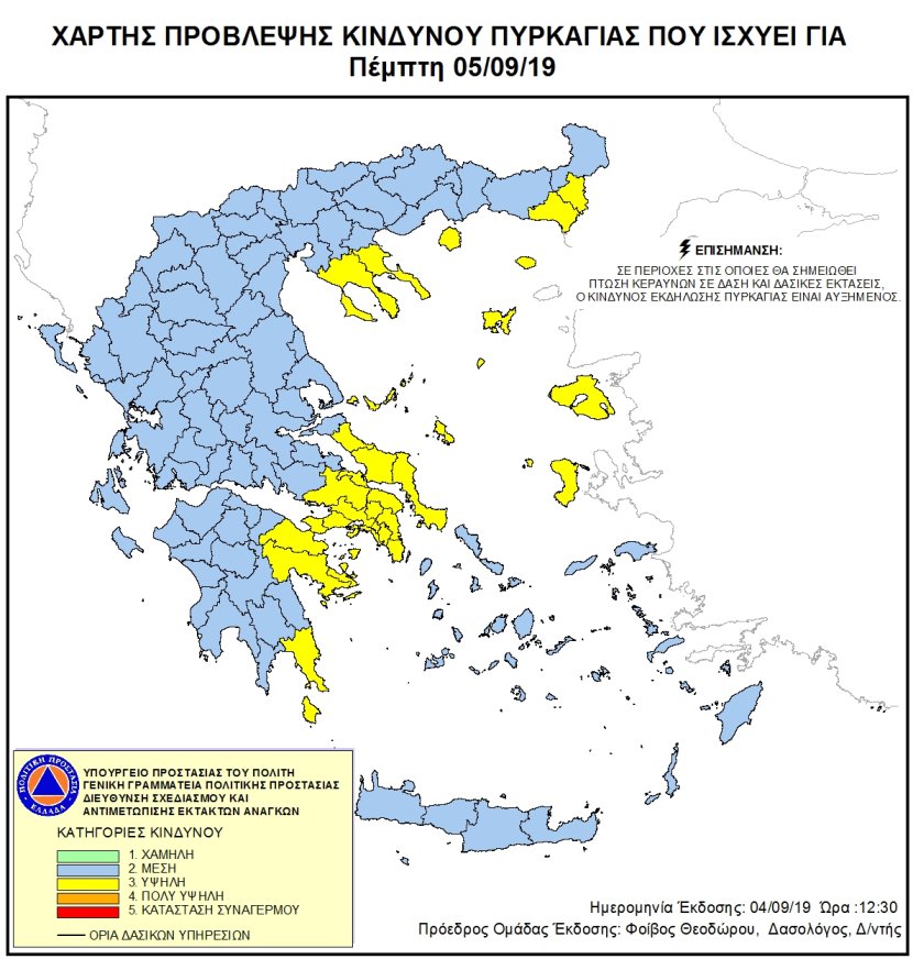 Ημερήσιος Χάρτης Πρόβλεψης Κινδύνου Πυρκαγιάς 05/09/2019
