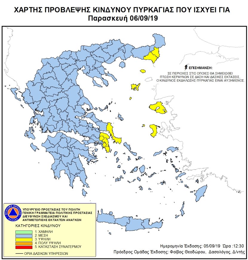 Ημερήσιος Χάρτης Πρόβλεψης Κινδύνου Πυρκαγιάς 06/09/2019