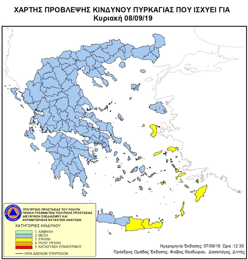 Ημερήσιος Χάρτης Πρόβλεψης Κινδύνου Πυρκαγιάς 08/09/2019