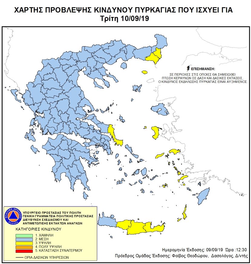 Ημερήσιος Χάρτης Πρόβλεψης Κινδύνου Πυρκαγιάς 09/09/2019