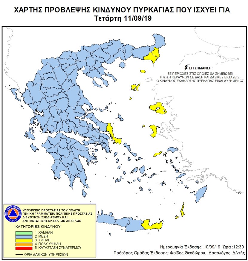Ημερήσιος Χάρτης Πρόβλεψης Κινδύνου Πυρκαγιάς 11/09/2019
