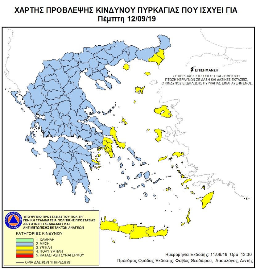 Ημερήσιος Χάρτης Πρόβλεψης Κινδύνου Πυρκαγιάς 12/09/2019