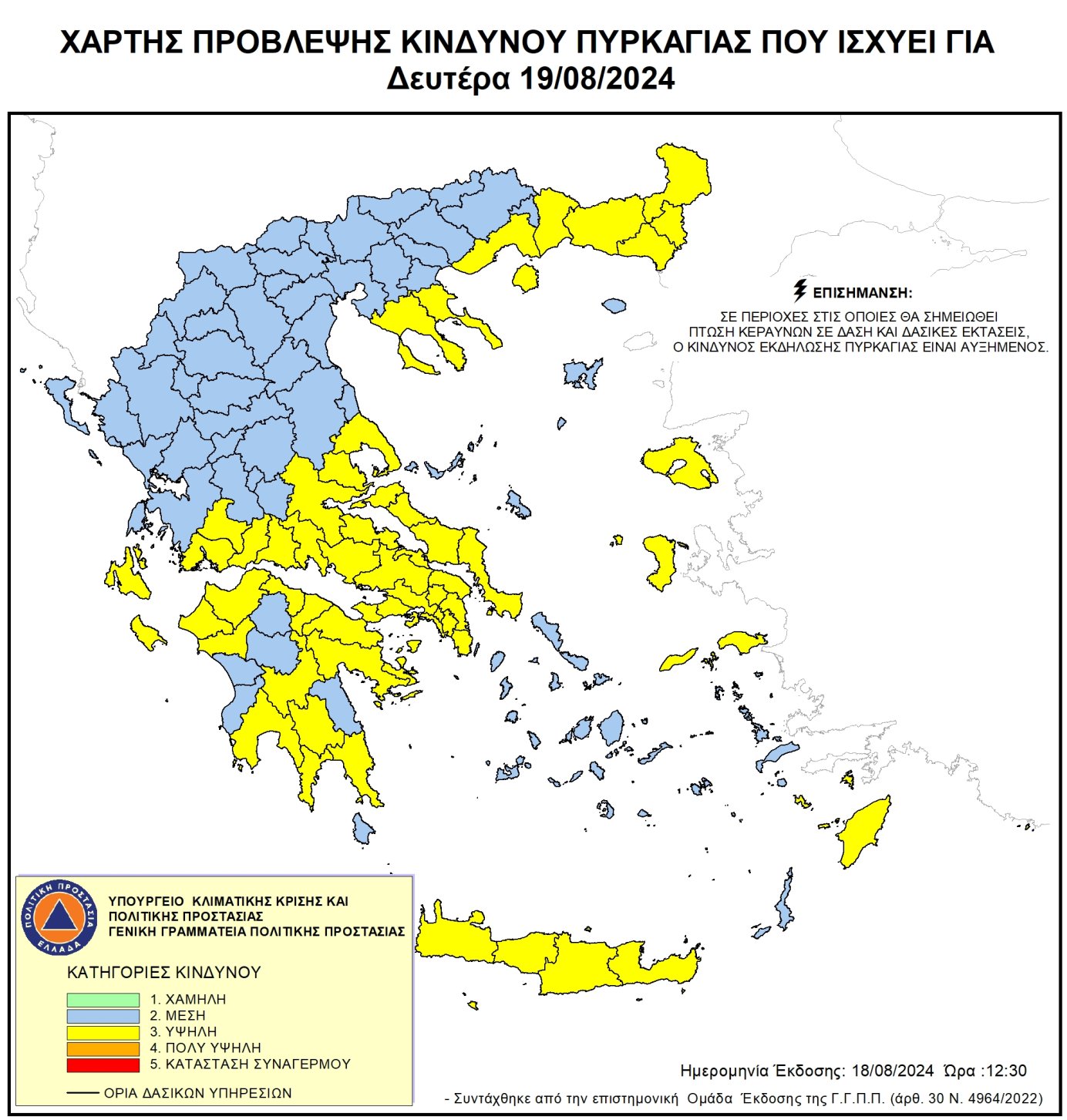 Ημερήσιος Χάρτης Πρόβλεψης Κινδύνου Πυρκαγιάς για 19/08/2024
