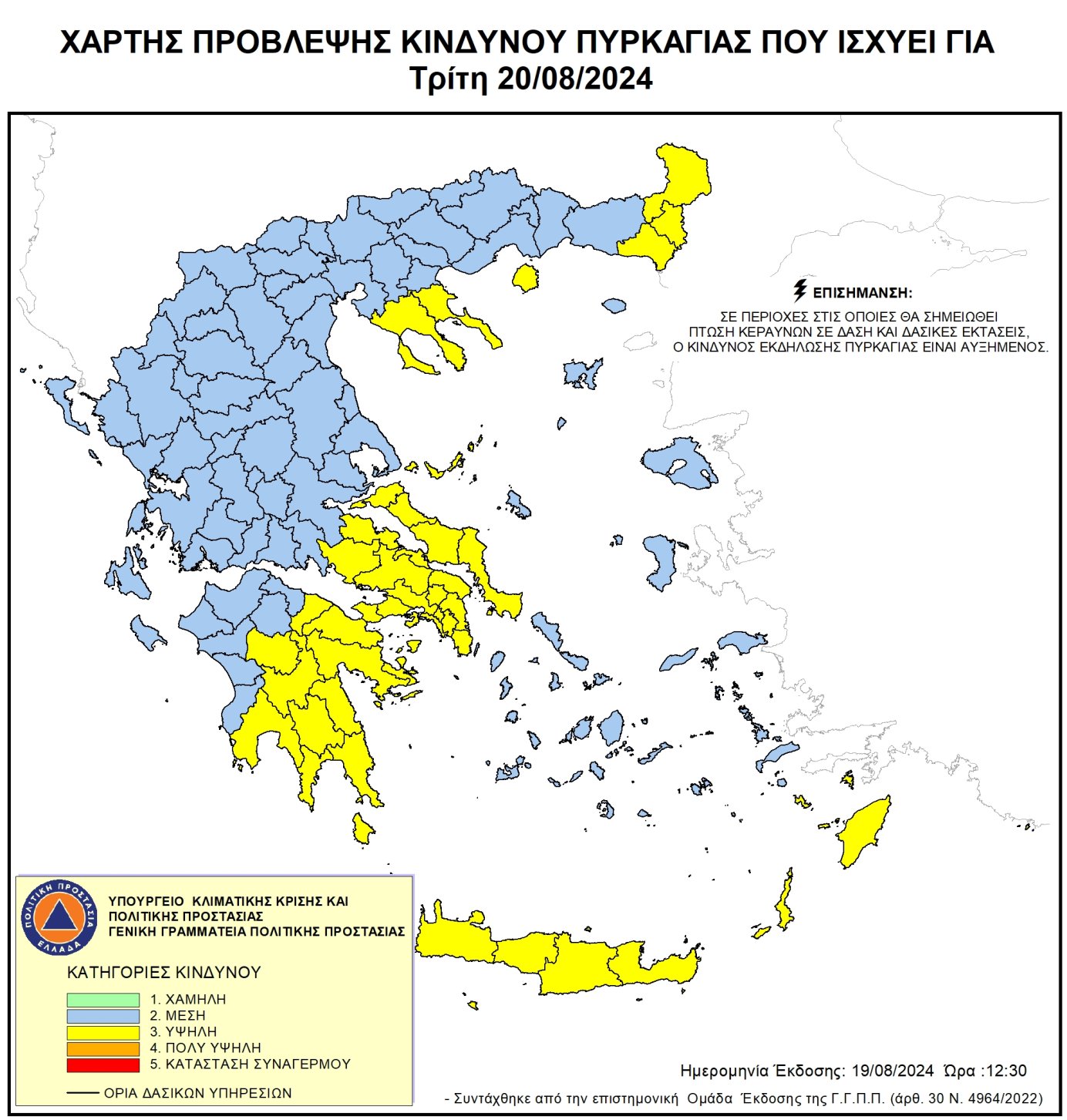 Ημερήσιος Χάρτης Πρόβλεψης Κινδύνου Πυρκαγιάς για 20/08/2024
