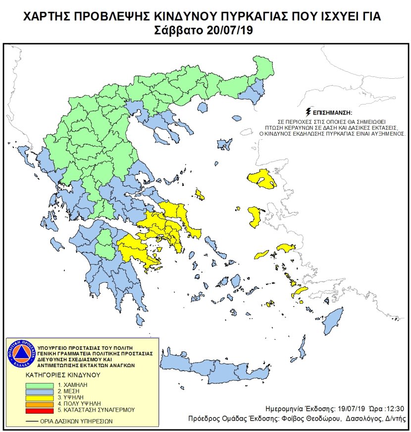Ημερήσιος Χάρτης Πρόβλεψης Κινδύνου Πυρκαγιάς 19/07/2019