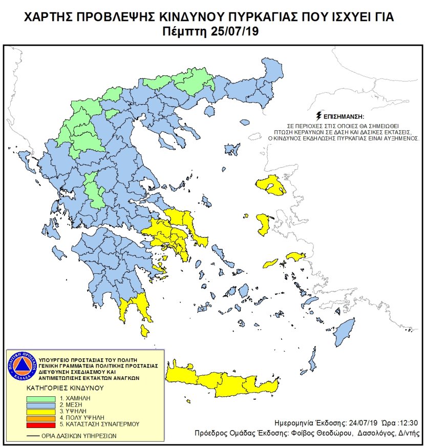 Ημερήσιος Χάρτης Πρόβλεψης Κινδύνου Πυρκαγιάς 25/07/2019