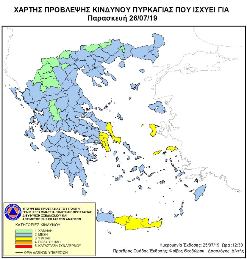 Ημερήσιος Χάρτης Πρόβλεψης Κινδύνου Πυρκαγιάς 26/07/2019