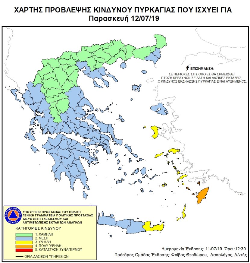 Ημερήσιος Χάρτης Πρόβλεψης Κινδύνου Πυρκαγιάς 12/07/2019