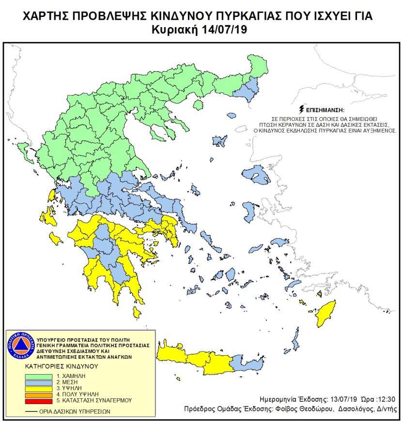 Ημερήσιος Χάρτης Πρόβλεψης Κινδύνου Πυρκαγιάς 14/07/2019