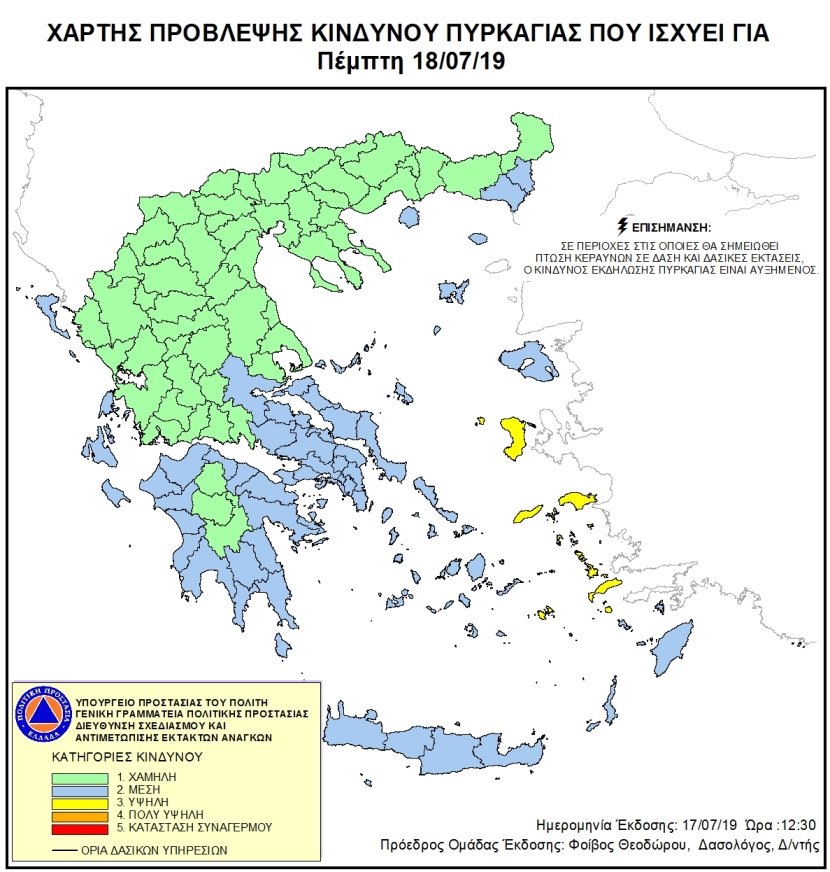 Ημερήσιος Χάρτης Πρόβλεψης Κινδύνου Πυρκαγιάς 18/07/2019