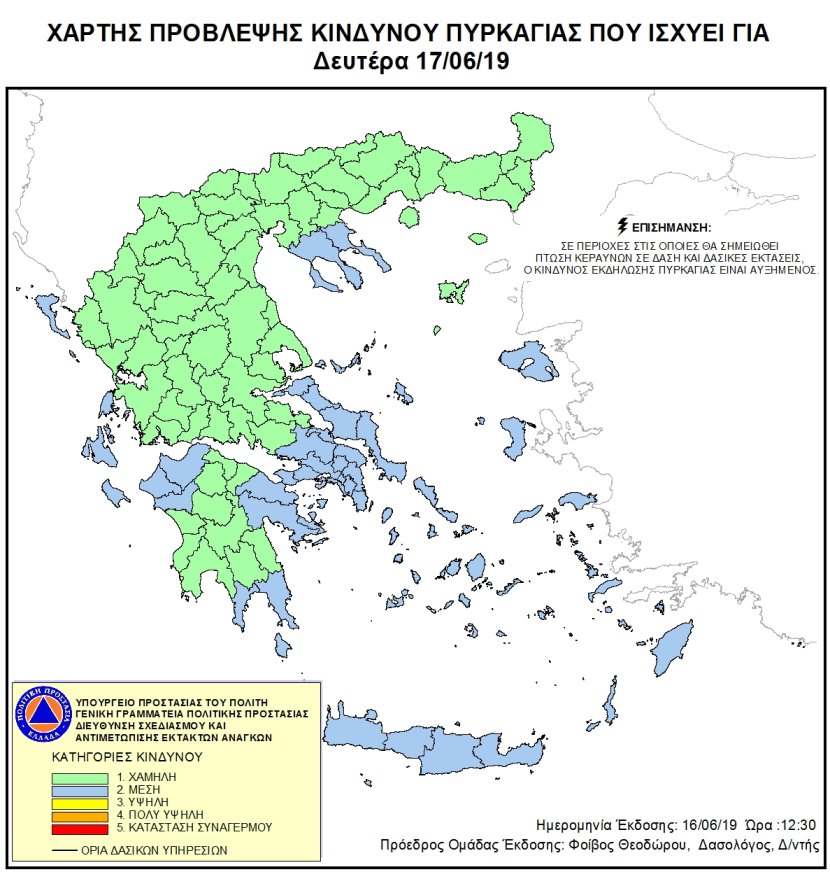 Ημερήσιος Χάρτης Πρόβλεψης Κινδύνου Πυρκαγιάς 17/06/2019