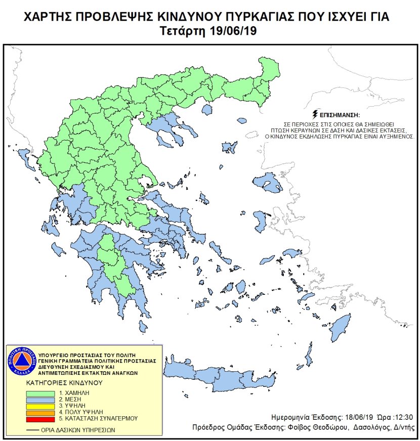 Ημερήσιος Χάρτης Πρόβλεψης Κινδύνου Πυρκαγιάς 19/06/2019