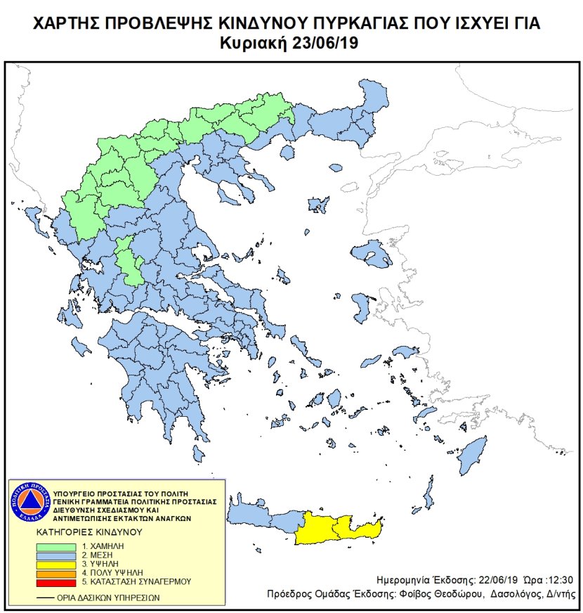 Ημερήσιος Χάρτης Πρόβλεψης Κινδύνου Πυρκαγιάς 22/06/2019