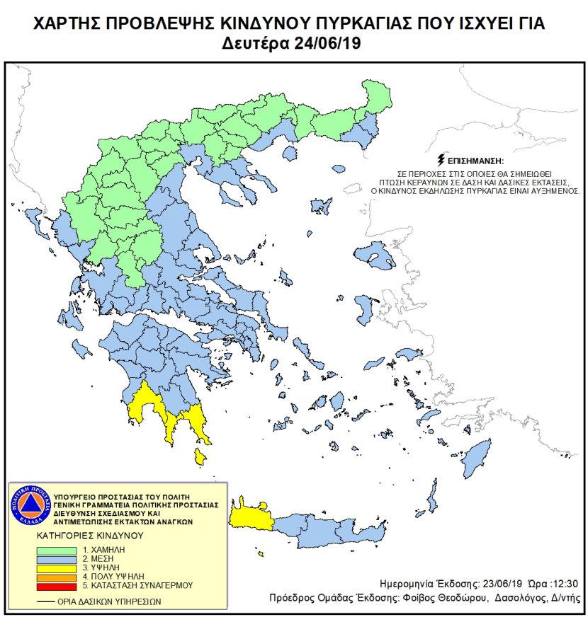 Ημερήσιος Χάρτης Πρόβλεψης Κινδύνου Πυρκαγιάς 24/06/2019