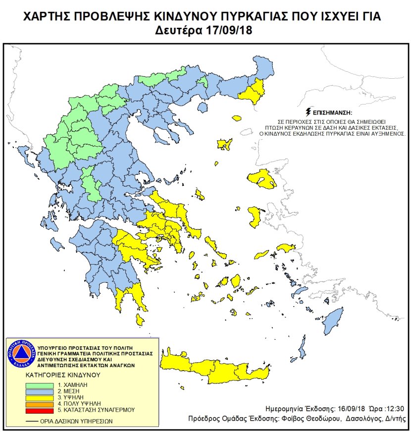 Ημερήσιος Χάρτης Πρόβλεψης Κινδύνου Πυρκαγιάς 17/09/2018