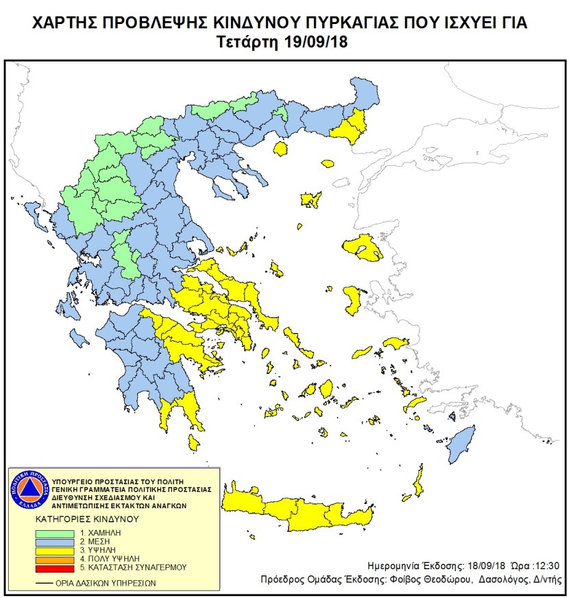 Ημερήσιος Χάρτης Πρόβλεψης Κινδύνου Πυρκαγιάς 19/09/2018