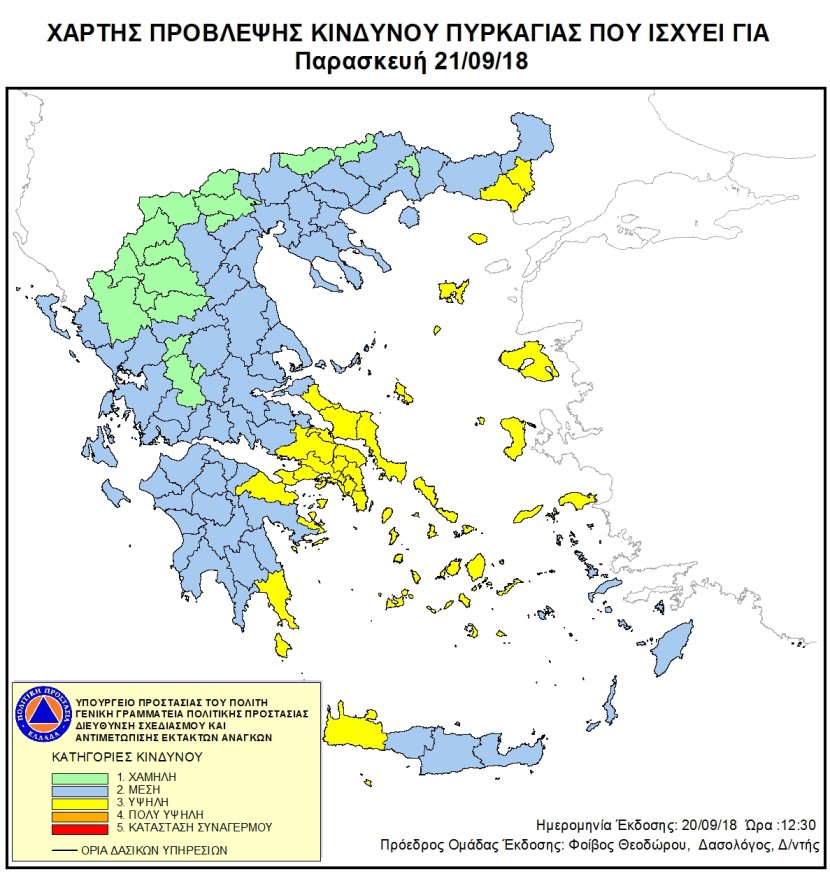 Ημερήσιος Χάρτης Πρόβλεψης Κινδύνου Πυρκαγιάς 21/09/2018
