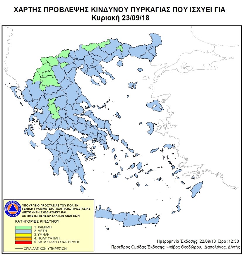 Ημερήσιος Χάρτης Πρόβλεψης Κινδύνου Πυρκαγιάς 22/09/2018