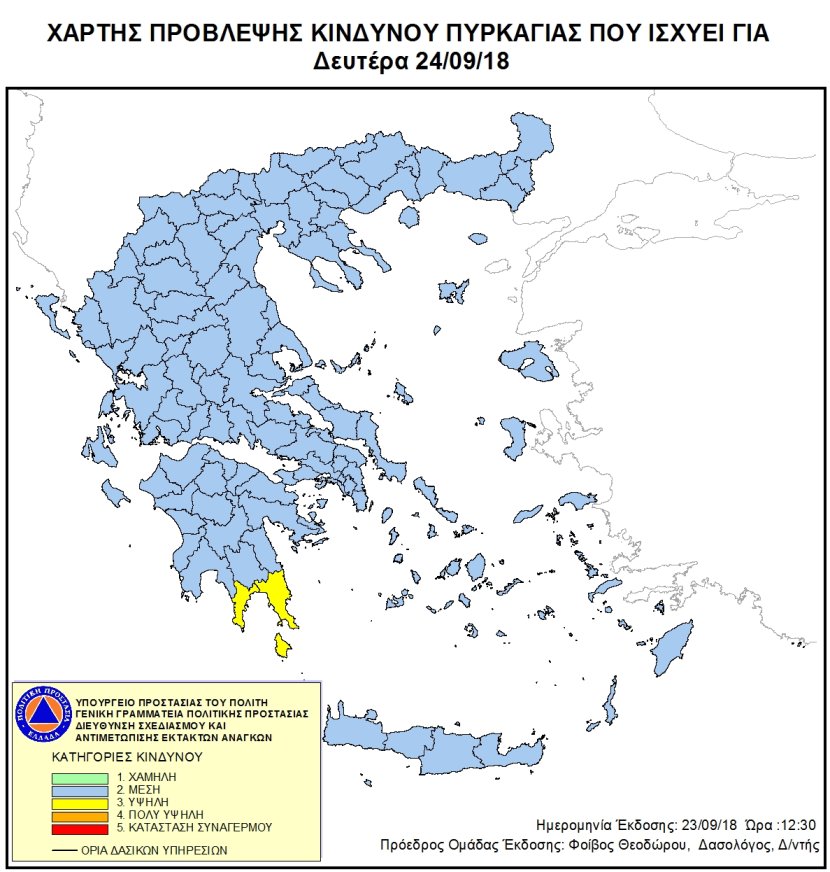 Ημερήσιος Χάρτης Πρόβλεψης Κινδύνου Πυρκαγιάς 23/09/2018