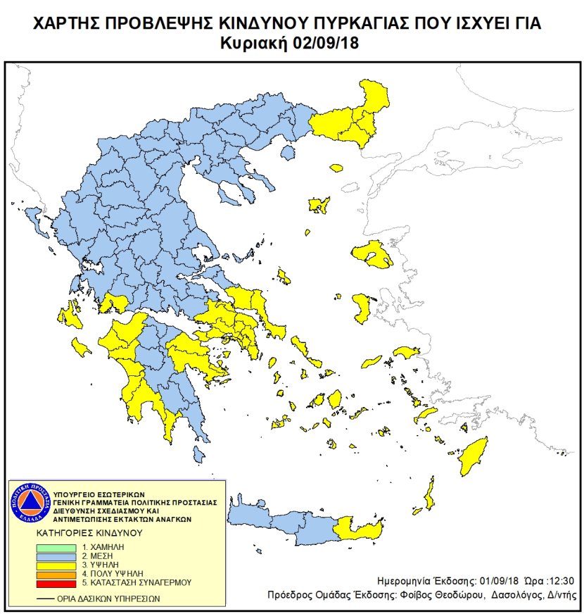 Ημερήσιος Χάρτης Πρόβλεψης Κινδύνου Πυρκαγιάς 01/09/2018