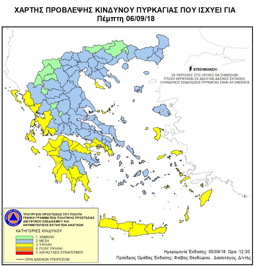 Ημερήσιος Χάρτης Πρόβλεψης Κινδύνου Πυρκαγιάς 06/09/2018
