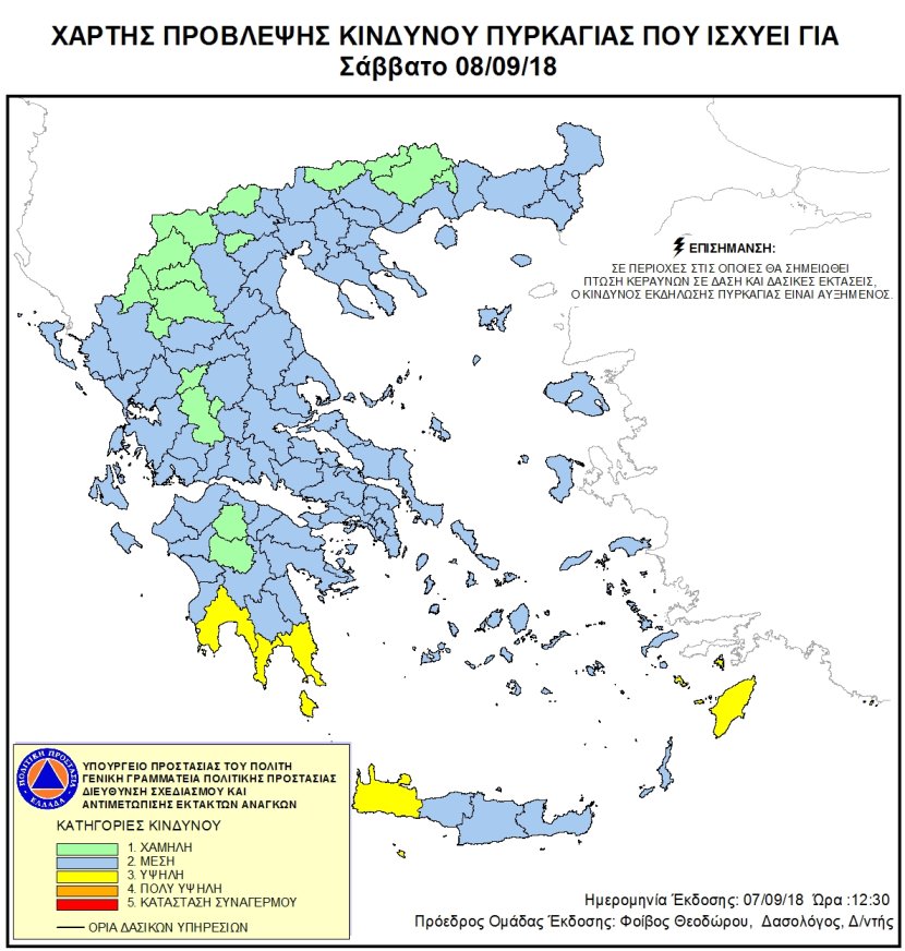 Ημερήσιος Χάρτης Πρόβλεψης Κινδύνου Πυρκαγιάς 07/09/2018