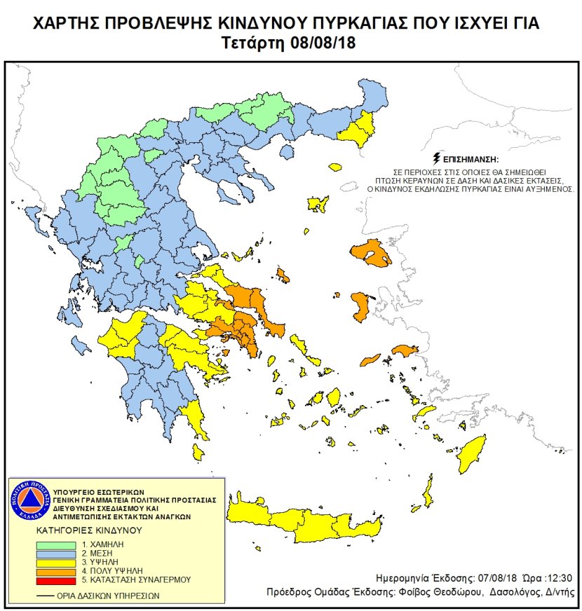 Ημερήσιος Χάρτης Πρόβλεψης Κινδύνου Πυρκαγιάς 08/08/2018