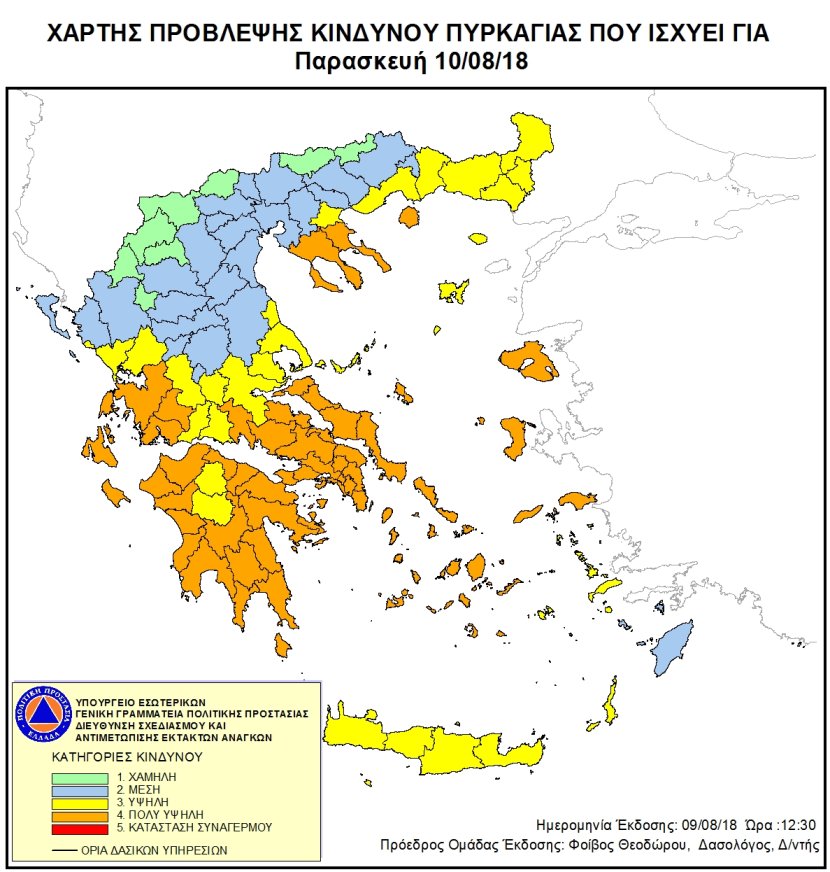 Ημερήσιος Χάρτης Πρόβλεψης Κινδύνου Πυρκαγιάς 10/08/2018