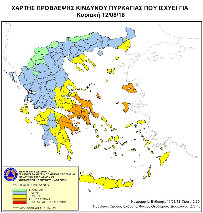 Ημερήσιος Χάρτης Πρόβλεψης Κινδύνου Πυρκαγιάς 12/08/2018