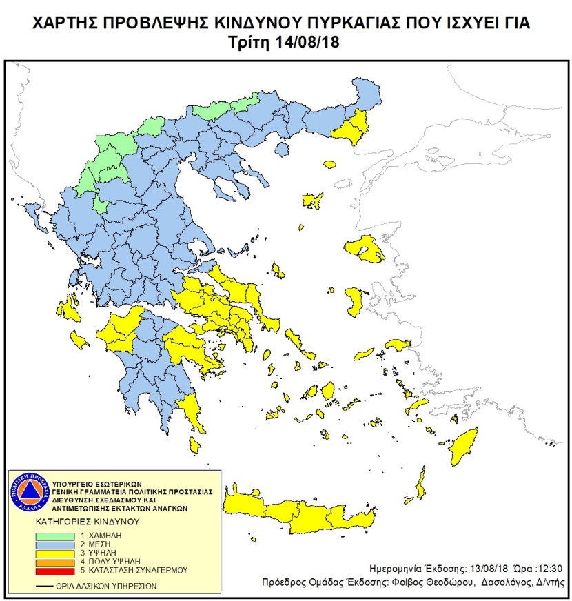 Ημερήσιος Χάρτης Πρόβλεψης Κινδύνου Πυρκαγιάς 13/08/2018