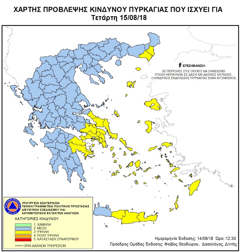 Ημερήσιος Χάρτης Πρόβλεψης Κινδύνου Πυρκαγιάς 15/08/2018