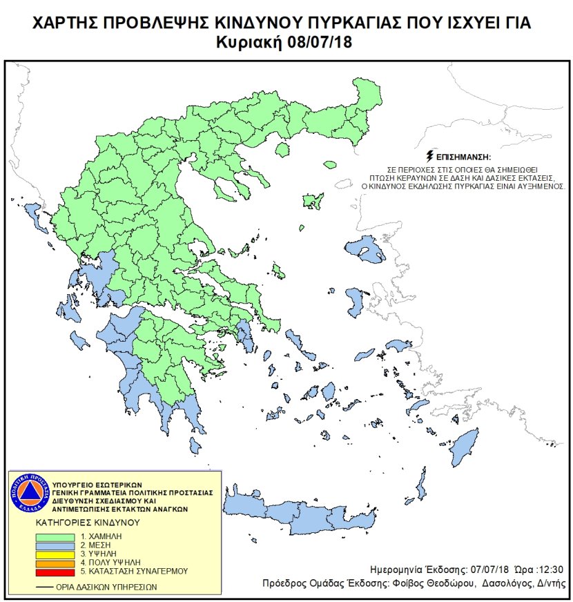 Ημερήσιος Χάρτης Πρόβλεψης Κινδύνου Πυρκαγιάς 08/07/2018