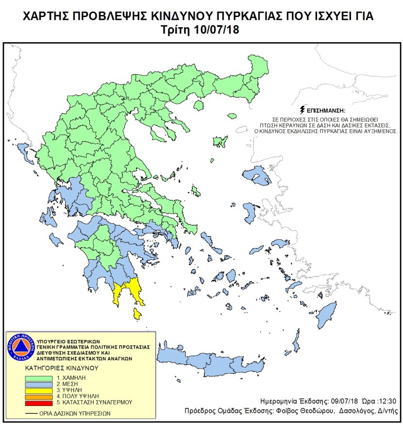 Ημερήσιος Χάρτης Πρόβλεψης Κινδύνου Πυρκαγιάς 09/07/2018