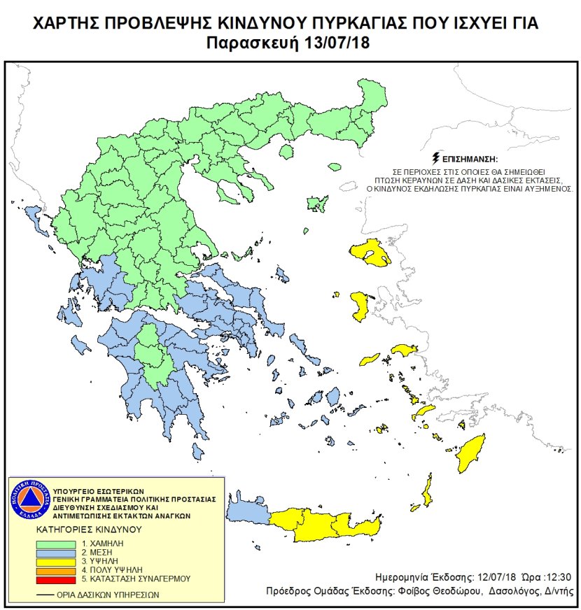 Ημερήσιος Χάρτης Πρόβλεψης Κινδύνου Πυρκαγιάς 12/07/2018