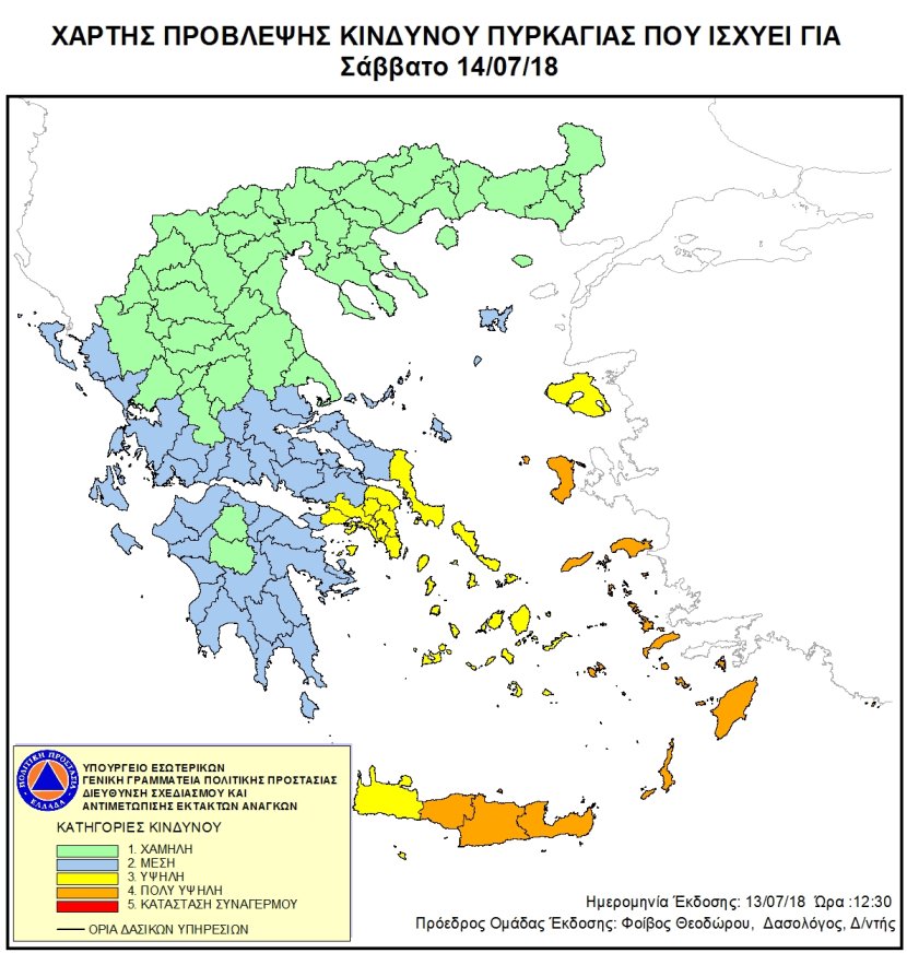 Ημερήσιος Χάρτης Πρόβλεψης Κινδύνου Πυρκαγιάς 14/07/2018