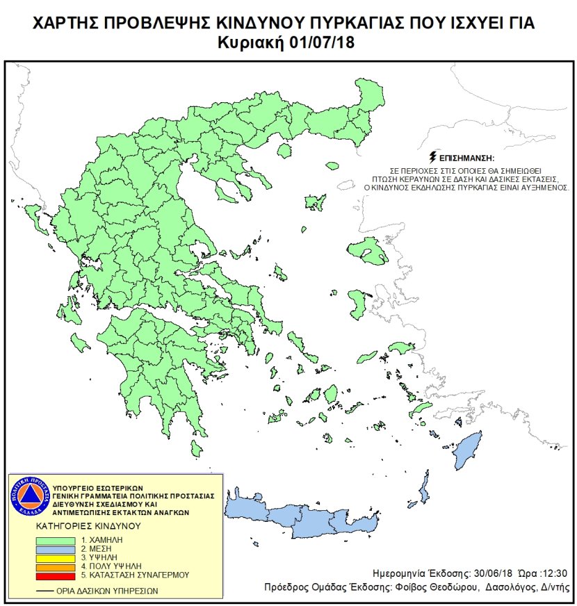 Ημερήσιος Χάρτης Πρόβλεψης Κινδύνου Πυρκαγιάς 01/07/2018